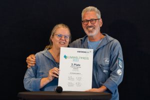 In diesem Jahr hatten wir uns um den Umweltpreis der Kieler Stadtwerke beworben - und es ist uns tatsächlich gelungen, den 2. Platz bei der Publikumswertung zu erzielen. So konnte dann unsere 1. Jugendwartin Anke in Begleitung unseres 1. Vorsitzenden Jens am 16. August den Gewinnerscheck über 2.000 EUR in Empfang nehmen: